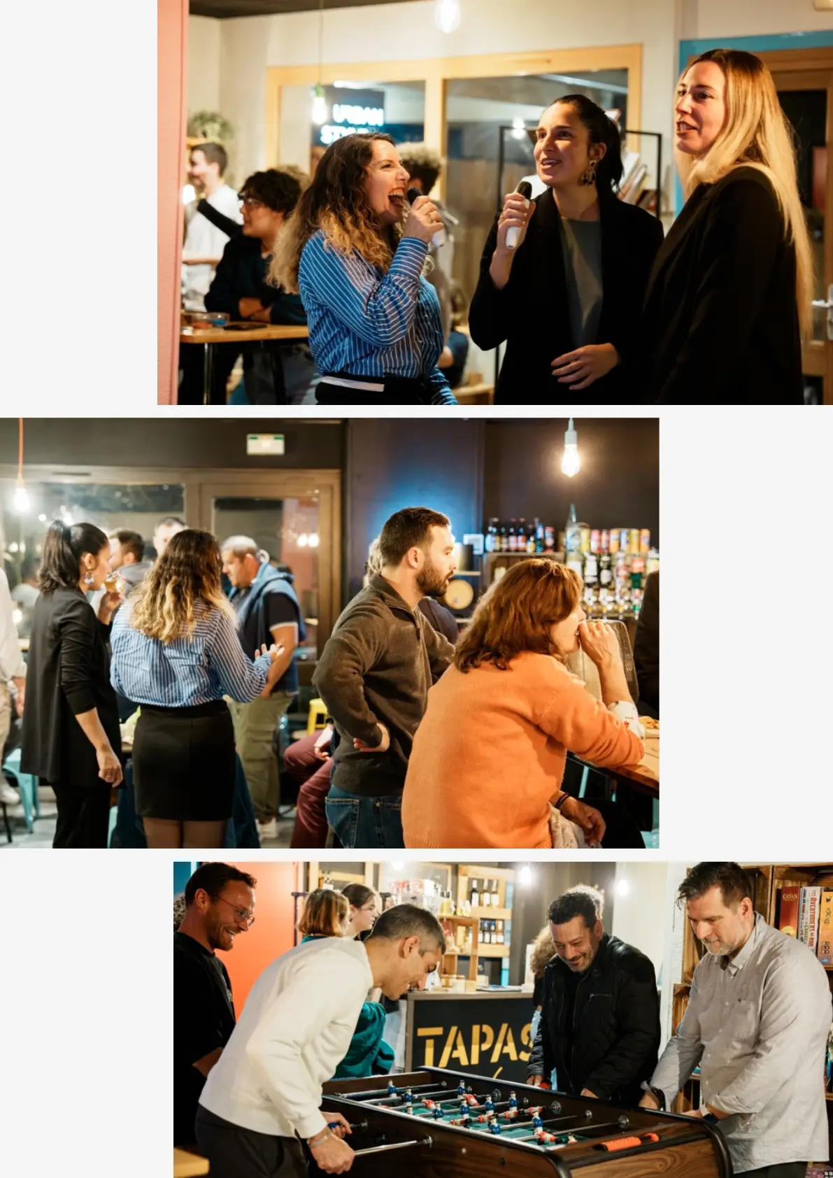 Boire, manger et s’amuser riment avec combo gagnant !  On déconnecte des écrans pour se reconnecter entre nous – un lieu multi-générationnel où le partage est roi.